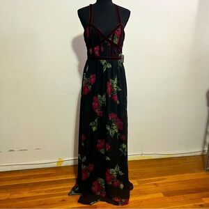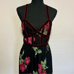 Altar'd State Black Maxi Dress with Pink Floral Accents