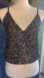 Eye-catching camisole with vibrant sequins. Features a chic V-neckline. Ideal for festive events.