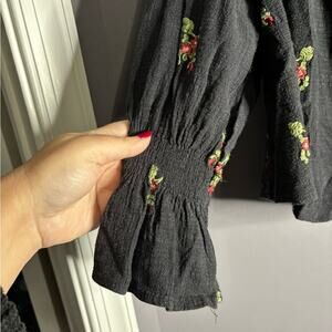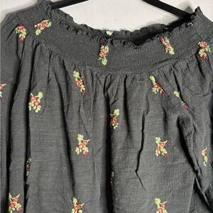 Altar’d State Black Off Shoulder Top With Embroidered Flowers Size Small