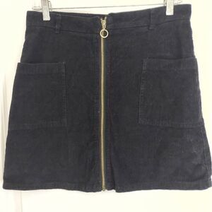 Altard State Black Skirt Fine Corduroy Mini Gold Zipper Front Pockets M