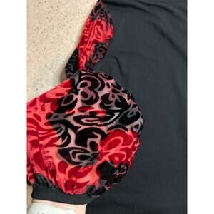 Color: Black w/ red & black burnout velvet sleeve detail