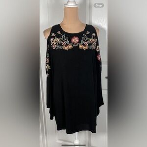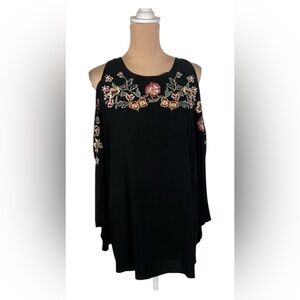 Altar’d State Black cold-shoulder dress with Flower Stitching Small