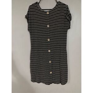Altar’d State Black And White Striped Button Back Short Sleeve Dress Large