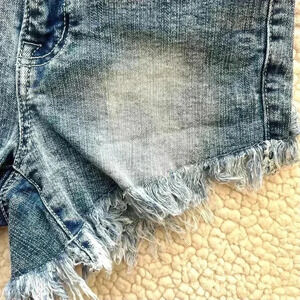 Altar’d State Bleached Faded Distressed Frayed Denim Cheeky Shorts Size 24