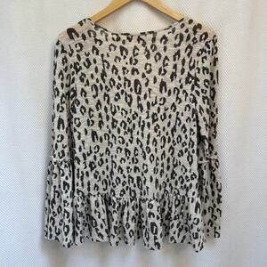 Altar'd State Women's Cream Medium Blouse. Long Sleeves, Flowy Ruffles Cheetah Print