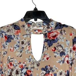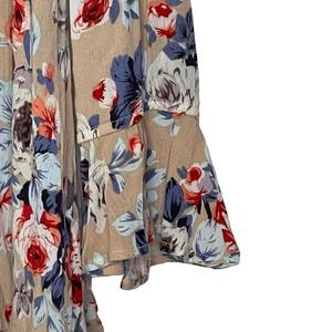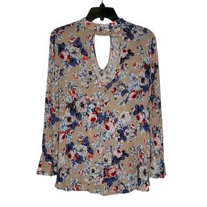 Altar'd State Blouse Size Small Tan Multi Color Floral Flare Sleeves Womens Top