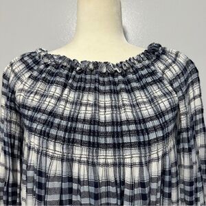 Altard State Blouse Smocked Plaid Blue White Elastic Peasant size M