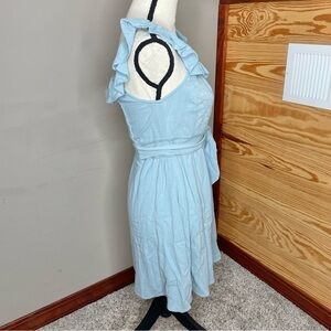 Altar’d State Blue Chambray Floral Embroidered Smocked Ruffle Mini Dress Medium