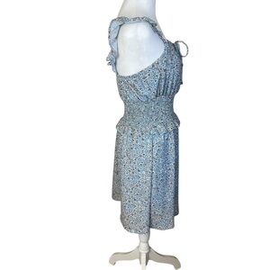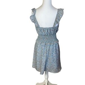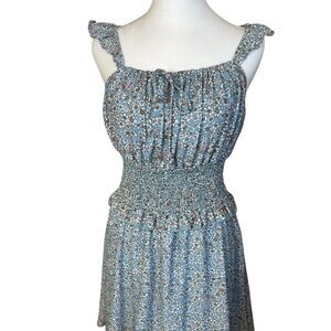 Altar’d State Blue Floral Milkmaid Peasant Dress Elastic Waist Ruffle Small