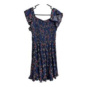Altar'd State Blue Floral Smocked Dress S Small Cottage Romantic Girly Flutter