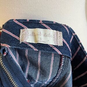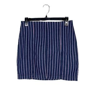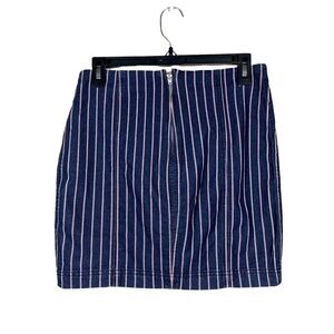 Altar'd State Blue Red Denim Pinstripe Zip Back Straight Mini Jean Skirt Size S