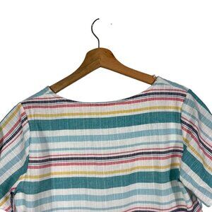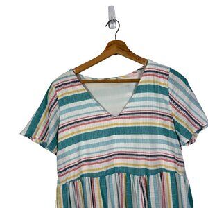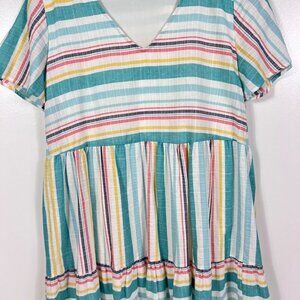 Altar'd State Blue White Pink Striped Dress Cotton Short Sleeves V Neck Small