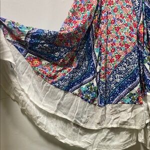 Vibrant floral patterns. Sleeveless design. Flowy and comfortable. Would be great for summer vacation, cruise, wedding on the beach, or everyday casual wear in warm weather.