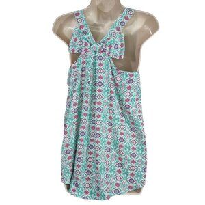 Altard State Blue-Green Printed Tank Top Racerback Bow Women Size M