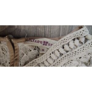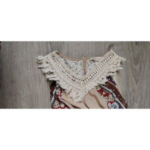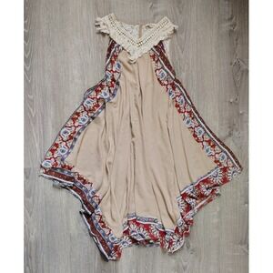 Altar'd State Boho Dress S Beige Red Handkerchief Hem Crochet Lace Neck