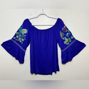 Altar’d State Boho Embroidered Floral Bell Sleeve Off The Shoulder Blouse