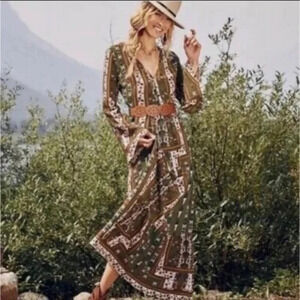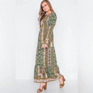 Altar'd State Boho Maxi Dress, Olive tree/multicolored 16328