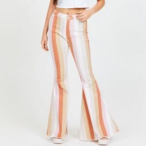Altar'd State Boho Pink Stripe Flare Bell Bottom Jeans NWT