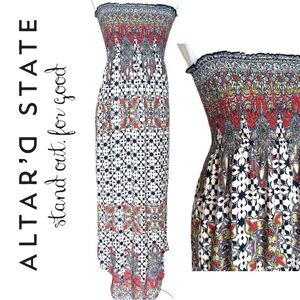 Altar’d State Boho Strapless Maxi Dress Multi Hue Paisley Print Smocked Tube Top