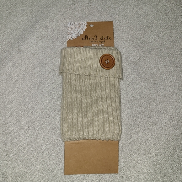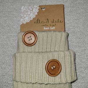 Beige/Cream Boot Knitted Cuff with Single Button Accent