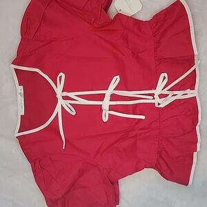 Elevate your style with this vibrant red puff sleeve top. Featuring a chic tie-front design, it's perfect for any occasion.