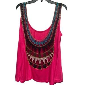 Altar'd State Bright Pink Crochet Back Teal, Black, Gold Cropped Tank