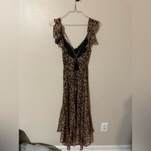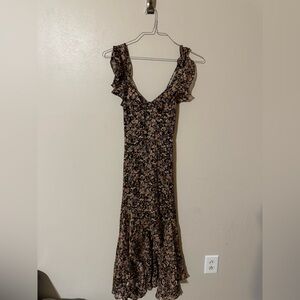 Elegant high low dress with floral design. Sleeveless and flowy. Perfect for any occasion.