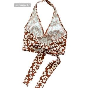 Altar’d State Brown White Floral Halter Tank Tie Straps L