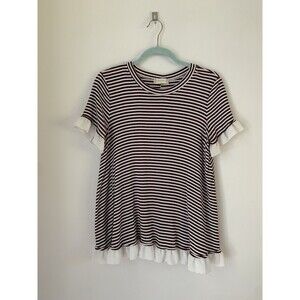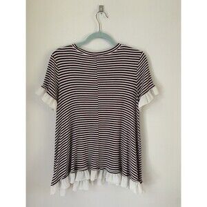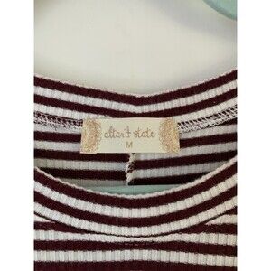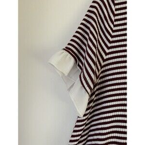Altar’d State Burgundy Cream Striped Babydoll Top Ruffle Trim- Women’s Size M