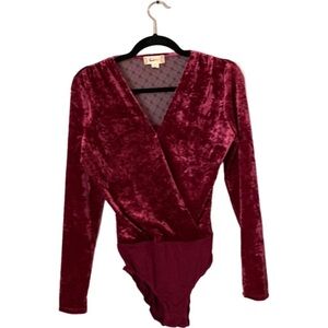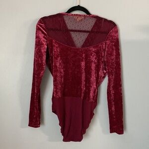 Altar’d State Burgundy Crushed Velvet Lace Back Bodysuit Long Sleeve Size S