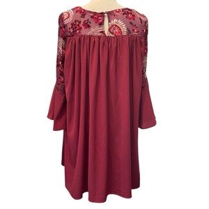 Altar'd State Burgundy Red Floral Velvet Burnout 3/4 Sleeve Flowy Boho Dress