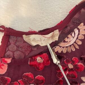 Altar'd State Burgundy Red Floral Velvet Burnout 3/4 Sleeve Flowy Boho Dress S