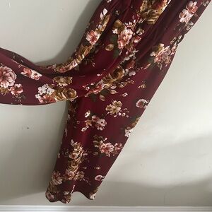 Altar’d State Burgundy/Maroon Floral Print On or Off the Shoulder Jumpsuit