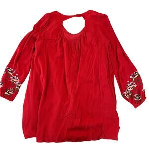 SIZE MEDIUM - RETAIL $80 - This Altar'd State Burnt Red/Rust W/Colorful Embroidered Sleeves Boho Dress is precious! This simple dress is great for any party! The pockets on each side give it a casual feel all while keeping it classy! Its open keyhole back offers a great addition to this dress, sure to make you feel confident and comfortable for any day! COLOR is Burnt Red/Rust and embroidery is green, blue, yellow, white -Loose -Long Sleeve -Lined -elastic on sleeve cuffs - 100% Rayon -Hand Wash Cold. APPROXIMATE MEASUREMENTS - Chest Across is about 19 1/2", Length varies between about 30"-32", Arm Length is about 24"