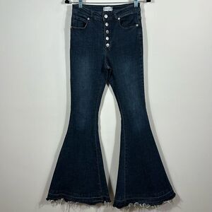 Altar’d State Button Front High Rise Flare Bell Bottom Raw Hem Women Jeans Small