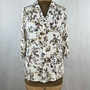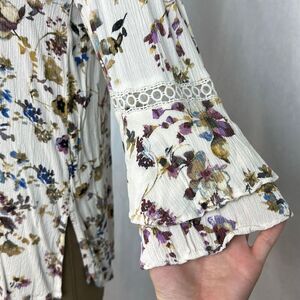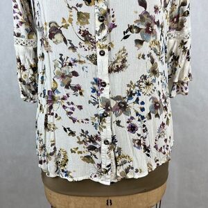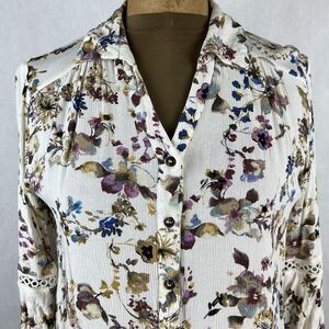 Altar’d State Button Down Blouse Shirt Top Floral Size Medium Lace Detail Ruffle