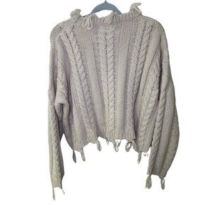 Altar'd State Cable Knit Sweater with Fringe Frayed - Size XS