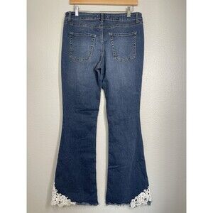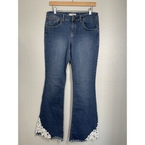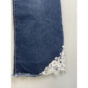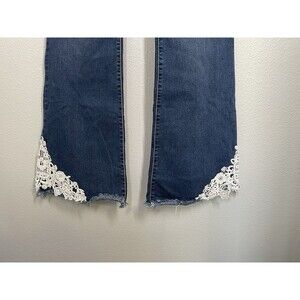 Altar'd State Caitlyn Lace Embellished Flare Denim Jean Womens Dark Stonewash 31