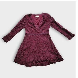 Altar'd State Calysta Burgundy Floral Lace Embroidered Long Sleeve Mini Dress XS