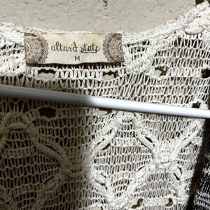 Altar'd State Cardigan Womens M Crochet Kimono Cocoon Open Front Grey Beige Wrap