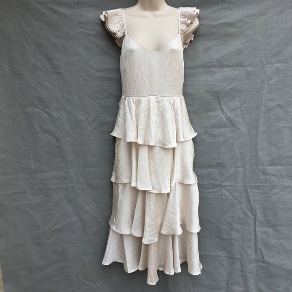 Altar'd State Champagne Dress Ruffle Tiered Satin Romantic Sz XS Sweetheart Neck