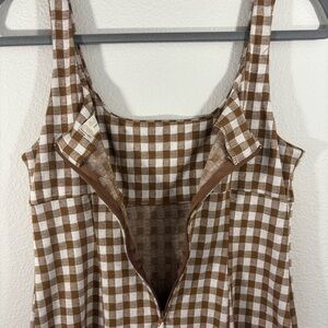 Altar'd State Checkered Brown and White Mini Dress M Preppy Feminine Minimalist