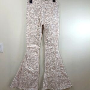 Altar'd State Cheetah print bell bottom jeans, pink / cream, size M