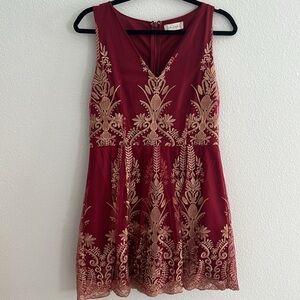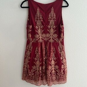 Altar'd State Christmas Holiday Red Gold Mini Dress Size Large