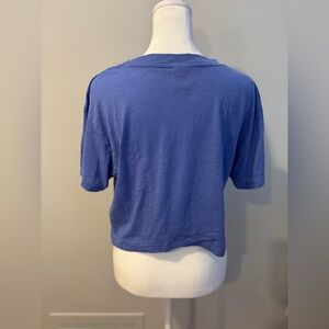 EUC tee from Altar’d State. Stylish detail in the back with angled/layered fabric. The color may differ a bit from photos, it is a bit more of a periwinkle color.