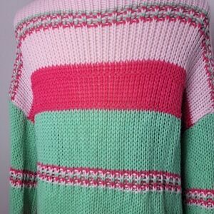 Altar'd State Pink & Mint Green Colorblock Striped Crochet V- Neck Sweater Size Small Relaxed Fit
