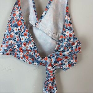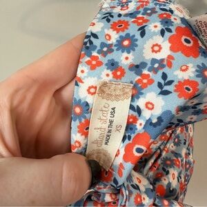 Excellent condition white, blue, and red floral v-neck cropped halter top. Very cute.