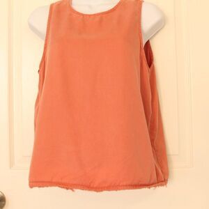 This beautiful coral top with denim texture and a beautiful frill at the bottom would look great with a pair of jeans, shorts, or even a skirt! Soft and easy to wear! Size medium with the following measurements: