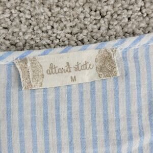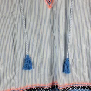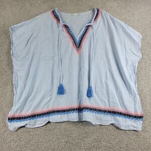 Altar'd State Boho Cover Up Top Women M Blue Pinstripe Tasseled Embroidered V-Neck Hippie Top, Perfect for Summer or Casual Outings