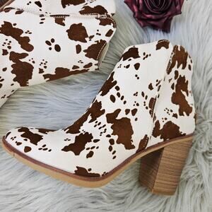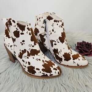 Altard State Cow Print Booties Brown White Western Ankle Boots Block Heel Sz 6.5